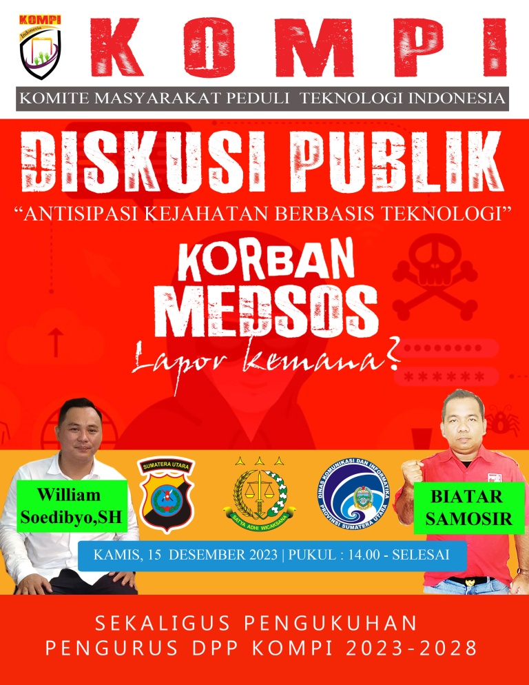 0 Berita, Event KOMPI Segera Gelar Diskusi Publik Antisipasi Kejahatan berbasis teknologi Berjudul “Korban MEDSOS Lapor Kemana? November 26, 2023 by pengurus